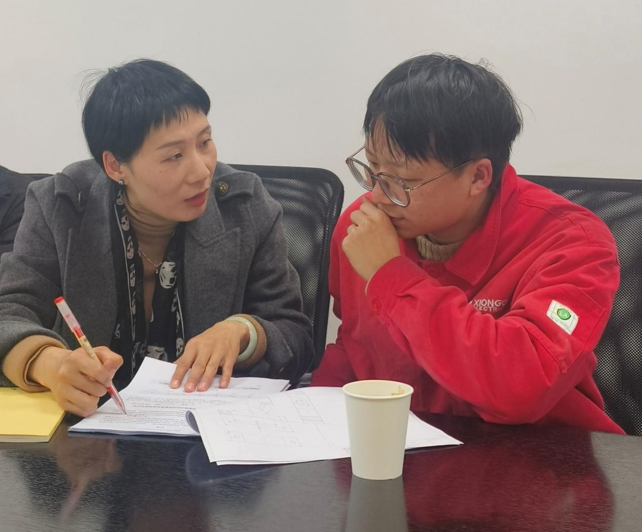 在熊谷公司会议室中,曾娟老师手持标注详细的论文稿,对照相关问题逐项为王顺德解析论文中热处理模型与设备实际工况的匹配度。针对企业工程师提出的“焊接变形率波动”问题,她现场指导员工调整论文实验方案。 “曾老师提前梳理了论文与企业技术手册的关联点,连数据采集点位都画了示意图,这种指导让我少走了很多弯路。”王顺德同学感叹道。