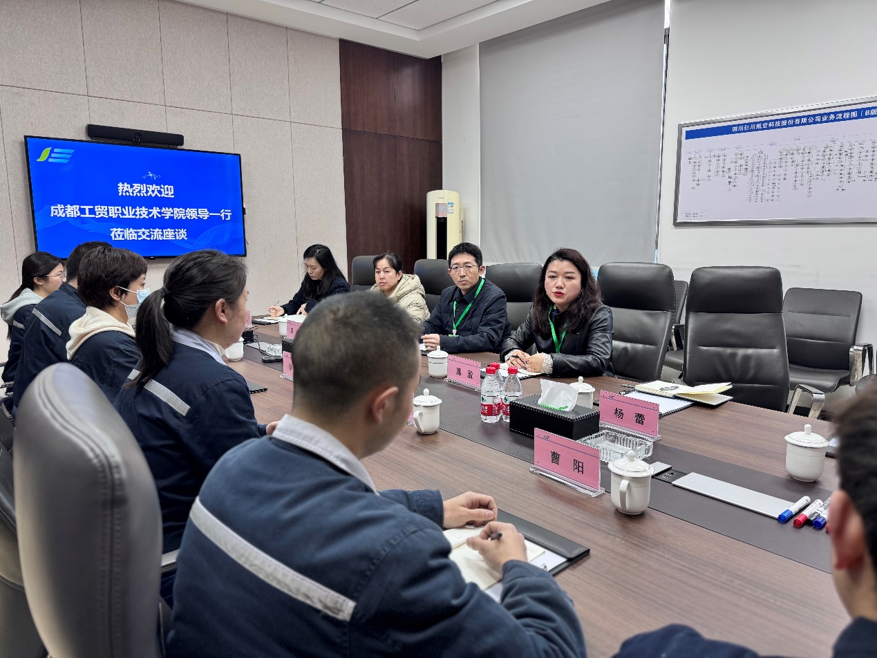 3月18日,公司一行首站抵达四川仨川航空科技股份有限公司。作为西南地区航空精密零部件制造领域的领军企业,仨川航空在航空航天精密加工、数字化生产线建设等均领域具有突出优势。党总支副书记席盈一行实地参观了企业生产车间、近距离观摩完整生产流程,详细了解公司的发展历程、技术创新成果。座谈会上,校企双方围绕“订单式培养”“现代学徒制”等合作模式展开探讨,进一步拓展合作领域,创新合作模式,实现资源共享、互利共赢。席盈表示:“希望通过校企协同,将产业前沿技术融入教学实践,培养更多适应高端装备制造领域的高素质技术技能人才。” 员工代表贾根勇、罗子子波分享了在公司的成长与收获。他们感谢公司的培养和公司提供的实践平台,表示通过实习已熟练掌握数控技术应用和产品检验等基础工作,对未来的职业发展充满信心。
