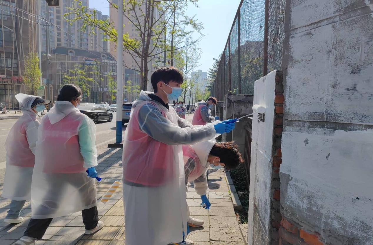 来到公司北门外社区主要街道,志愿者们开始对道路两旁的杂草进行清理,并完成校园外墙美化工作。在近3个小时的活动中,他们顶着烈日,汗流浃背,但却分工明确、尽心尽力完成自己的工作任务。在大家的共同努力下,原本斑驳的墙面焕发出新的光彩,街道的面貌也焕然一新。