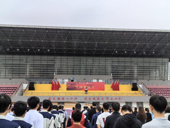 8:00,国旗仪仗队迈着铿锵有力的步伐,走向国旗台。在激昂的国歌声中,鲜艳的五星红旗冉冉升起,全体师生行注目礼,共同见证这一神圣而庄重的时刻。