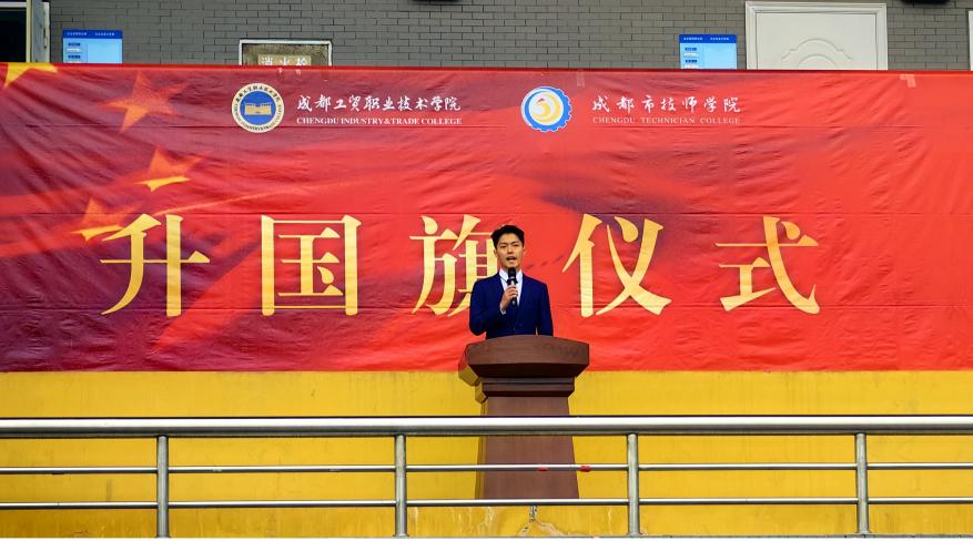 三亿高职材料23-1班的蒲欣同学作“以匠心筑梦,以技能报国”为题在国旗下作分享。他用自己的成长经历,号召同学们提升自我,强化专业技能,实现人生无限可能,鼓励同学们要心怀梦想、勇往直前,相信通过不懈的努力定能创造辉煌人生。