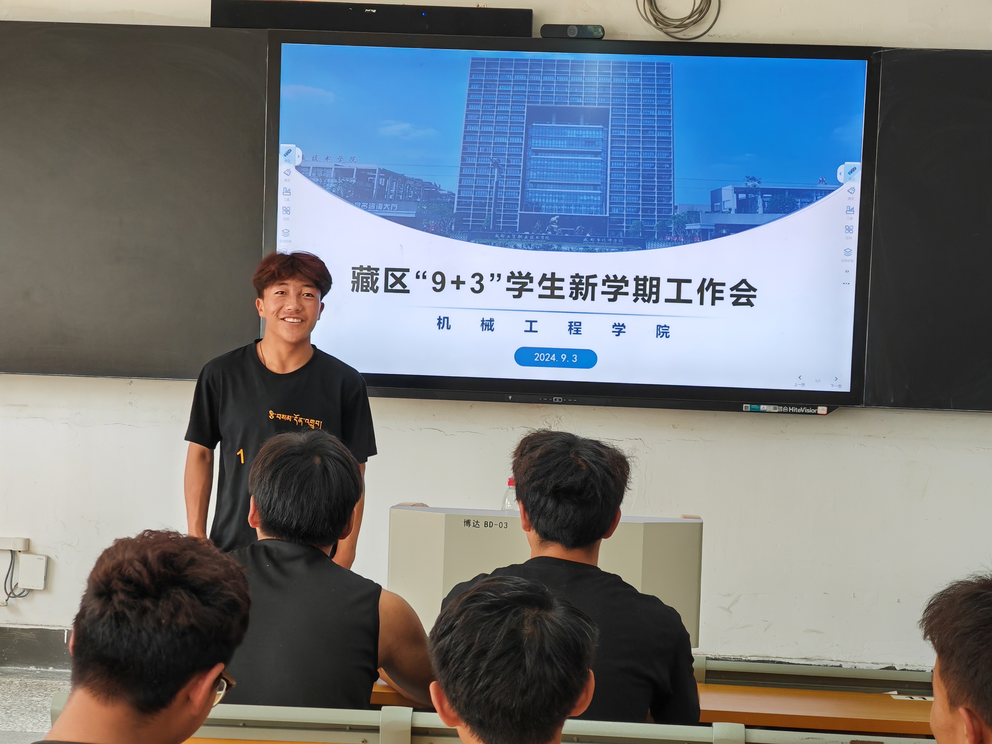随后,各年级员工代表分享了他们暑期的经历和感受。23级员工代表杨志轩讲述了暑假在家帮助父母经营农家乐的故事。来自红原的华旦泽让向大家分享了暑假留在成都打暑假工补贴家用的故事。由于缺乏一门专业技能,他只能在一些餐馆做传菜生、服务员,劳动的辛苦、微博的收入,让他更加深刻的认识到了劳动的伟大,也感受到了文化知识和技能技术的重要性,坚定了他认真学习专业技能的决心。他说到,只有学好技能,才能找到好工作,才能走出大山。