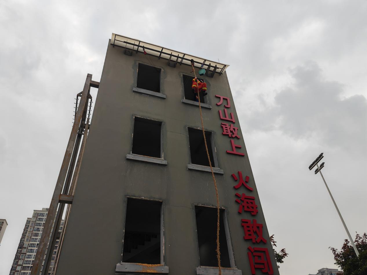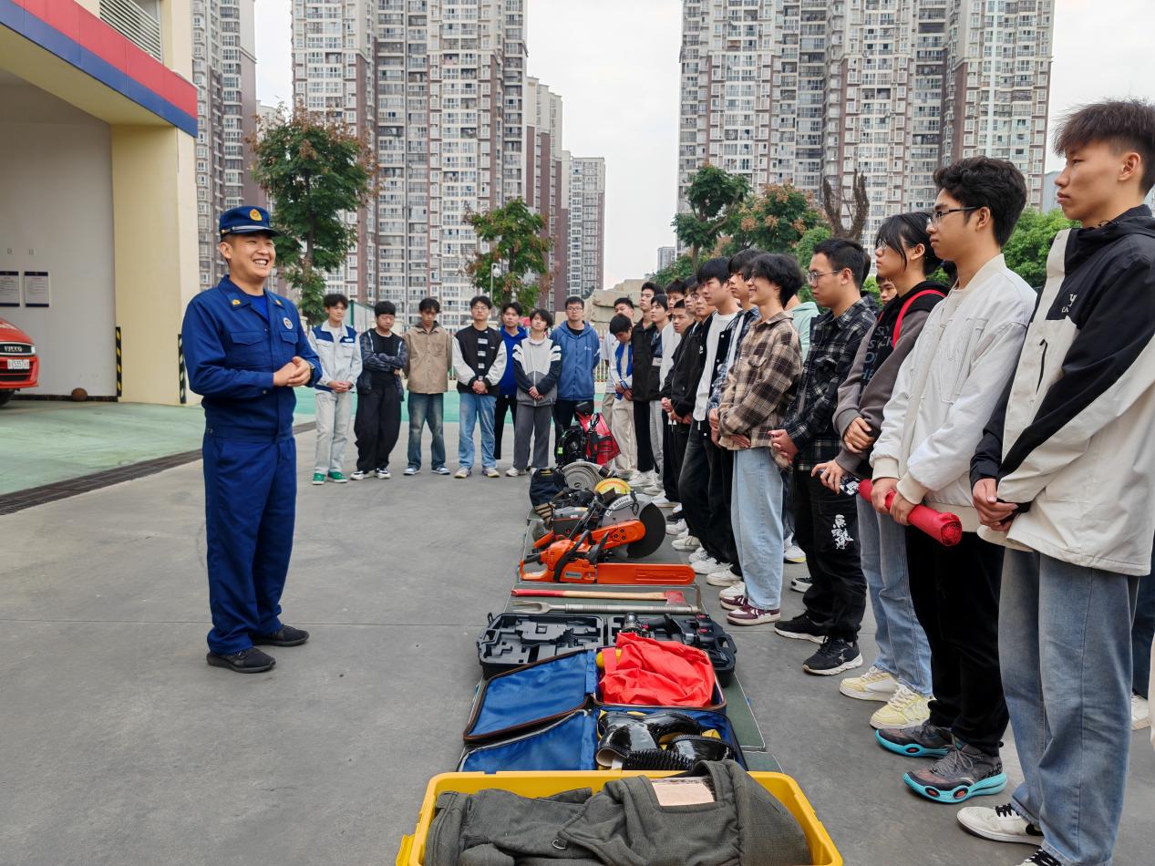 活动中消防官兵向同学们讲解了各类消防器材的功能作用及正确使用方法,同时也让同学们亲身感受了各类装备器材,并“零距离”观摩了消防官兵的“爬楼绝技”。