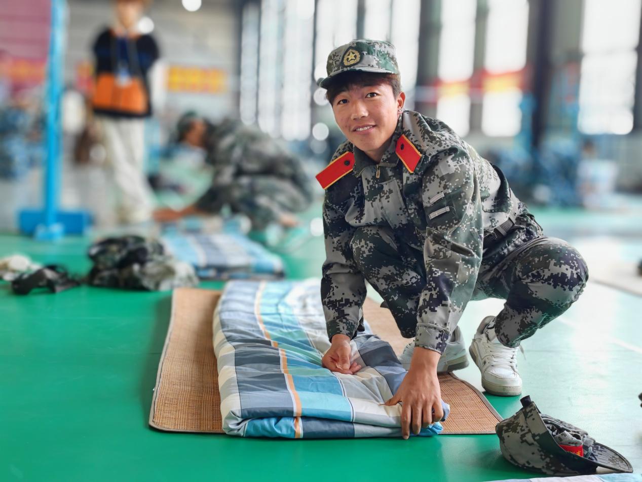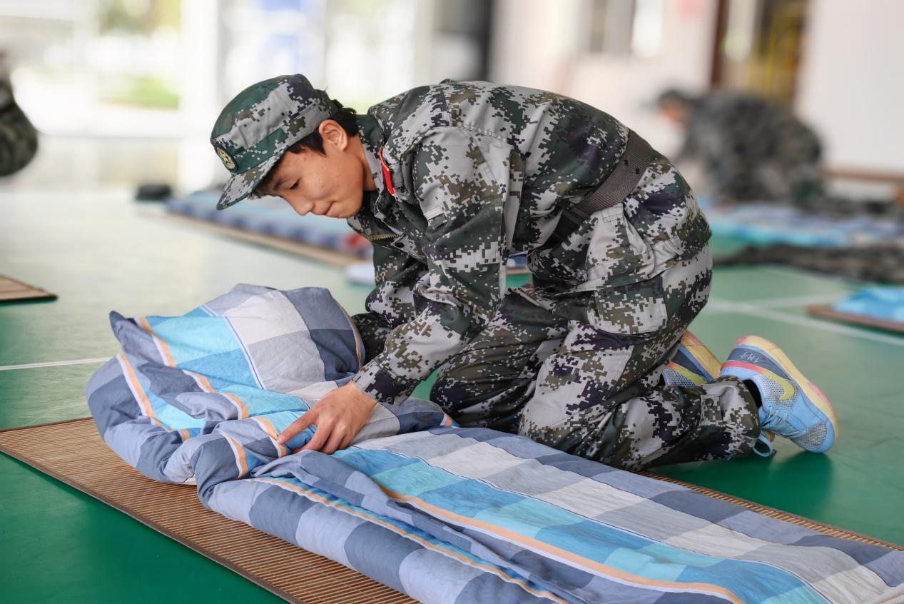 正式比赛开始前,军训教官详细演示了叠军被的规范步骤,并讲解了动作要领。随后,选手们迅速投入到紧张而激烈的比赛中,他们一丝不苟地铺平、压实、翻折、扣角、捏角,动作行云流水、一气呵成,严格按照规范步骤操作,完成叠军被和衣物整理两个项目。
