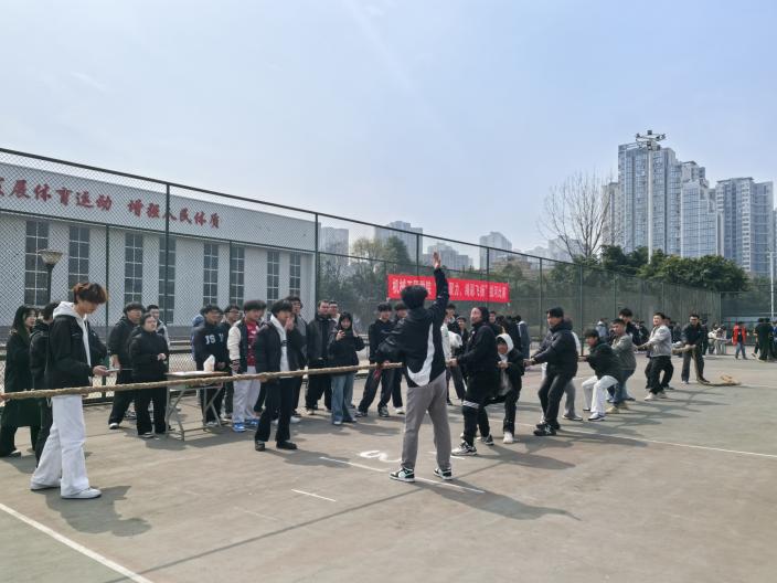 赛场上,参赛队员双脚抵地、身体后仰的姿势定格成一道道蓄势待发的剪影。“一二!拉!”整齐划一的口号声中,高职智控24-1班与高职数控23-3班的对决将气氛推向高潮。双方僵持近三分钟,麻绳在反复拉锯中磨出焦痕,最终高职智控24-1班以顽强的耐力锁定胜局。“手掌磨破时,听见队友喊坚持,突然懂了什么是集体荣誉感。”胜利队伍队长丁世源展示着缠着绷带的手说道。
