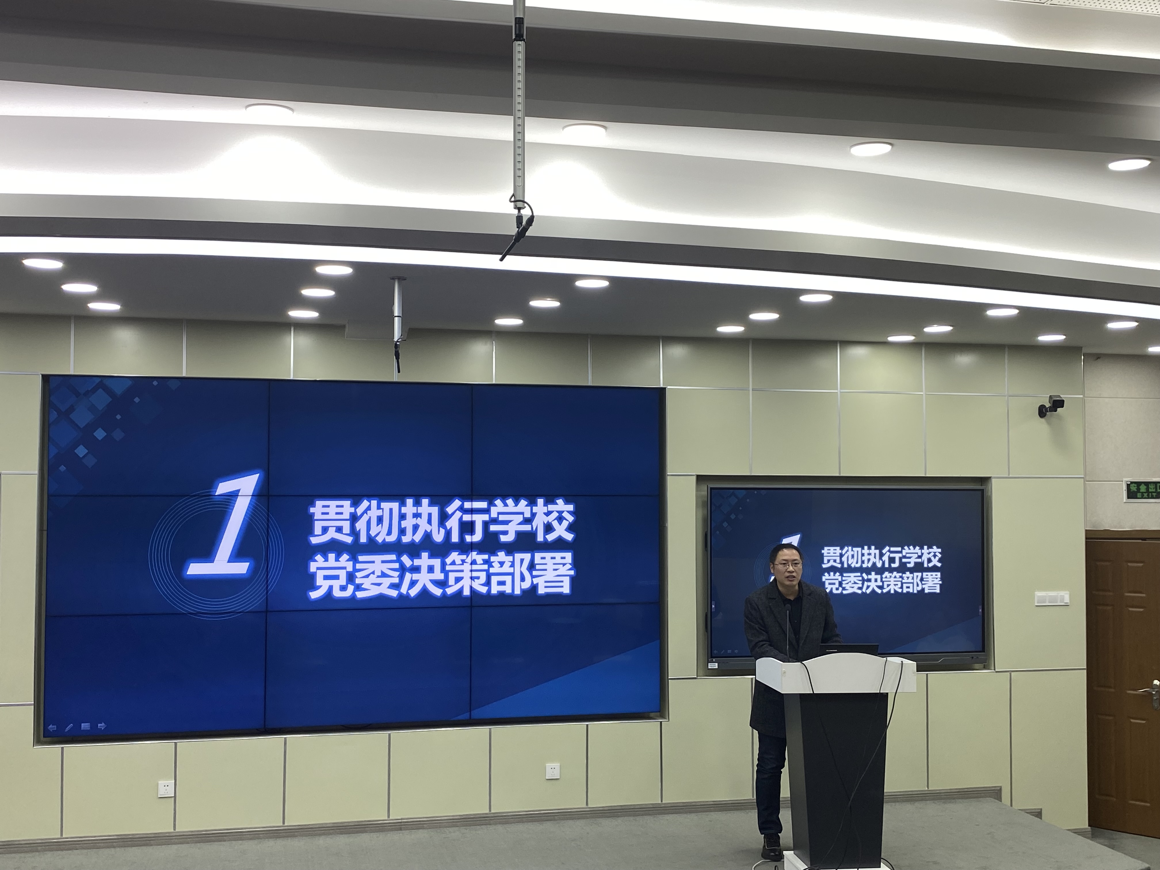 最后,江辉从如何贯彻执行公司党委决策部署、公司工作创新点、亮点等四个方面进行了下一步的部署和安排,要求全体教职工:一要识大局,紧跟时代步伐;二要知不足,补齐短板;三要扬专长,善谋善为;四要提质量,提高专业建设的内涵质量,为国家培养更多新时代产业工匠。
