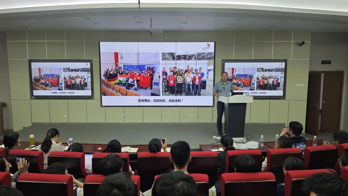 尤为引人瞩目的是,陈娟教授还结合自身参与世赛选手培养历程,分享了宝贵的培训经验与方法。她强调,技能竞赛不仅是技术的比拼,更是心理素质、创新思维和团队协作能力的综合考验。她鼓励同学们在日常学习中注重实践与创新,勇于挑战自我,不断提升自我竞争力。