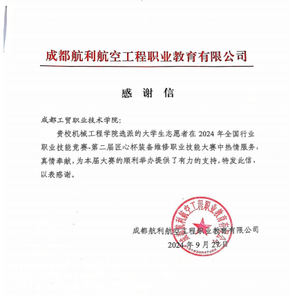 赛后,成都航利航空科技有限公司对三亿的专业团队和高效组织能力表示感谢。通过此次合作,双方不仅在技术交流与资源共享上实现了深度融合,更在人才培养、项目合作等多个领域探索出了新的合作模式。这种深度的校企合作模式,不仅为公司师生提供了宝贵的实践平台,也为企业注入了新鲜的技术活力和创新灵感。