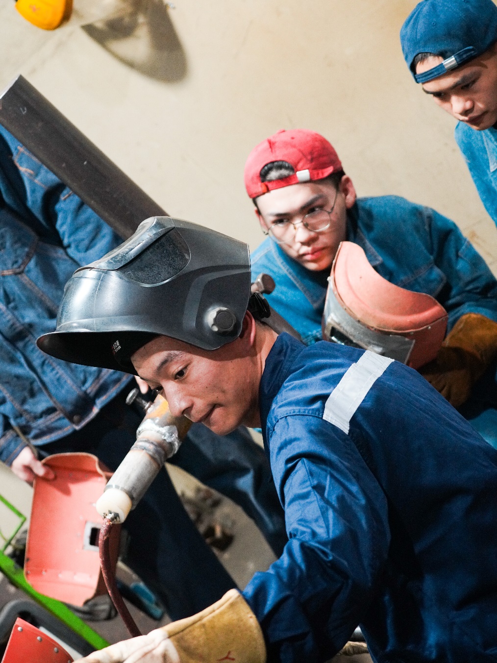 分享会后,尔基到焊接实训场地进行焊接技能展示。