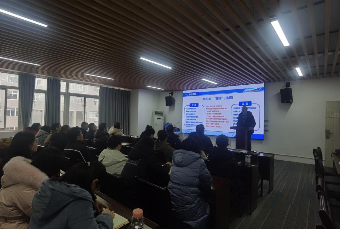 会上,机械工程公司党总支书记、副经理(主持工作)江辉代表公司班子从党建工作、教学科研、产教融合、技能竞赛等多方面总结了2024年度公司获得的各项标志性成果,肯定了全体教职工齐心协力、迎难而上,为公司、公司高质量发展所作出的努力。随后,江辉以“高水平办学能力和高质量产教融合”为题,为大家解读“新双高”政策,希望大家在接下来的工作中,聚焦立德树人根本任务,加强专业基础建设,实施铸魂育人工程。