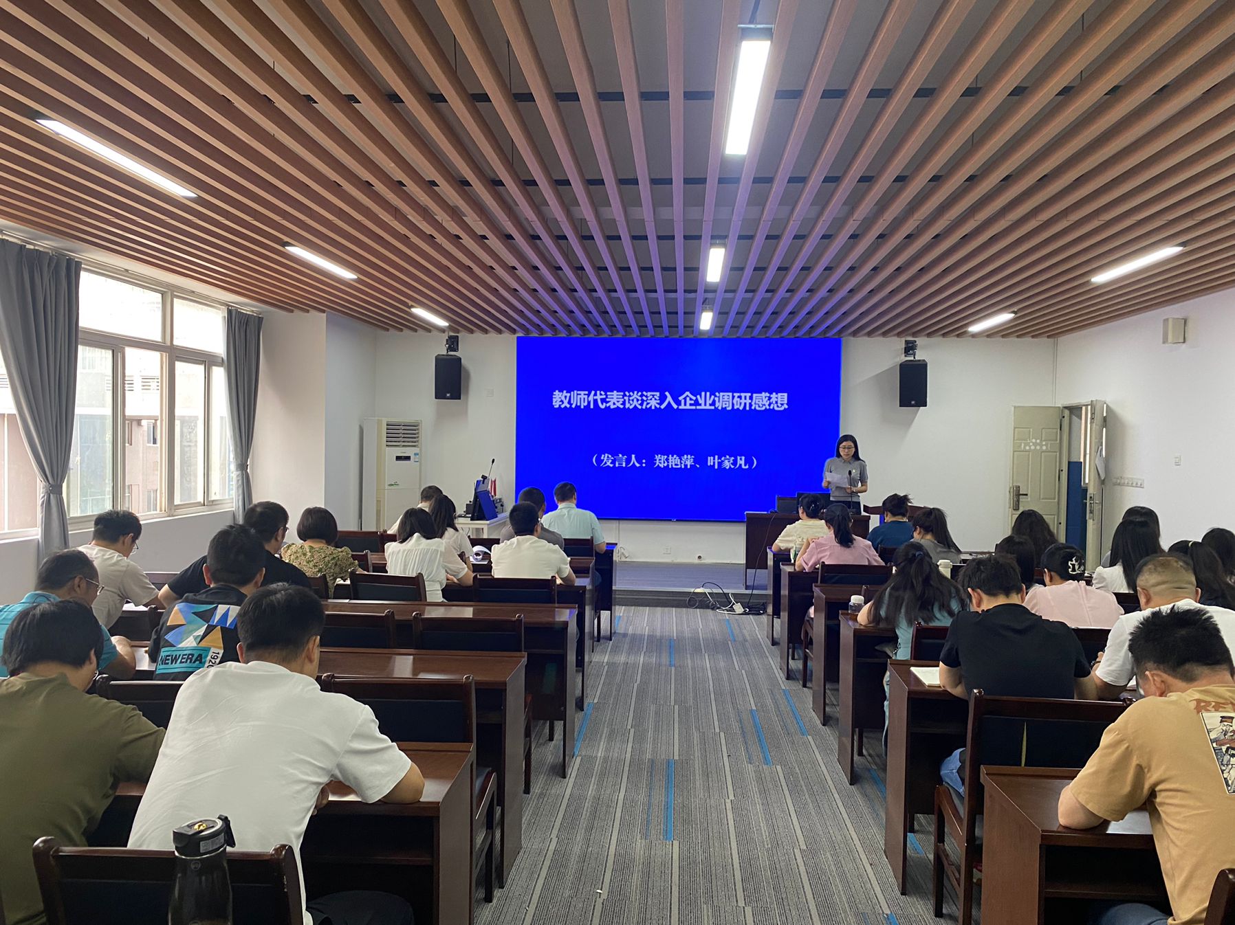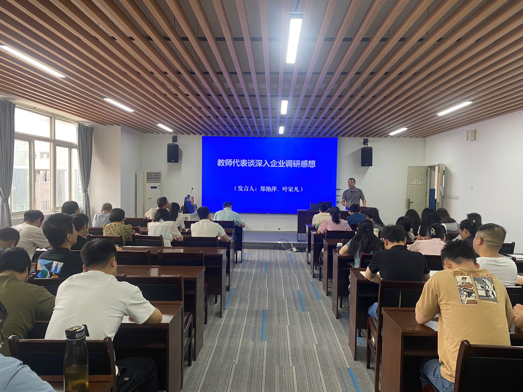 专业教研组代表郑艳萍和叶家凡分享了他们深入企业调研的深刻感悟。他们结合实地调研中积累的丰富经验,深入分析了当前企业对高技能人才、复合型技能人才的迫切需求,强调了理论知识与实践操作紧密结合对于培养高素质人才的重要性。